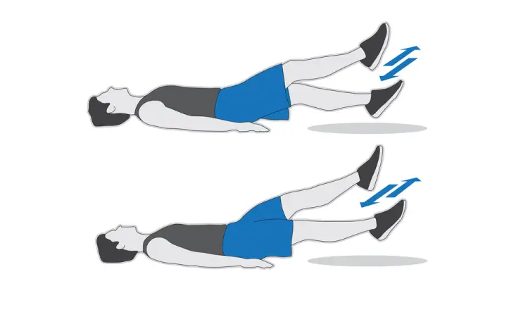 - استلق على ظهرك، مع ثني الساق السليمة وترك الساق المصابة ممدودة.